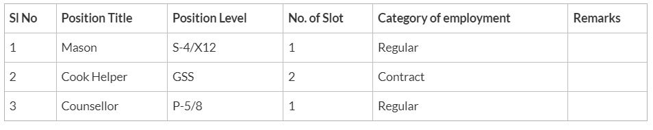 - For the post of Cook Helper, candidates must be able to read and write. Preference will be given to those with prior experience.